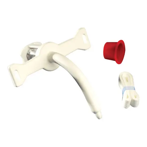 La cánula de silicona sin balón es para pacientes que no requieren un balón. La aleta de sujeción blanda ayuda a fijar la cánula con una irritación mínima del estoma.¹