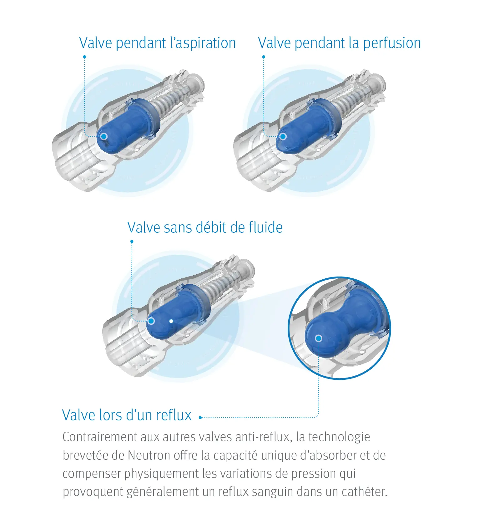 Technologie unique qui contribue à réduire le reflux et à maintenir la perméabilité du cathéter
