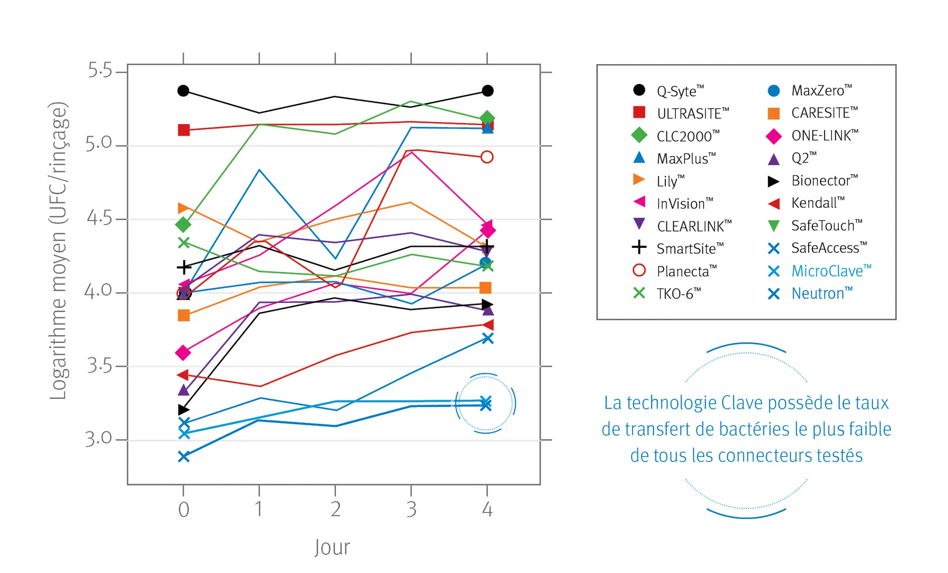 Réduisez au minimum le transfert bactérien et la colonisation grâce à la technologie de connecteur sans aiguille Clave