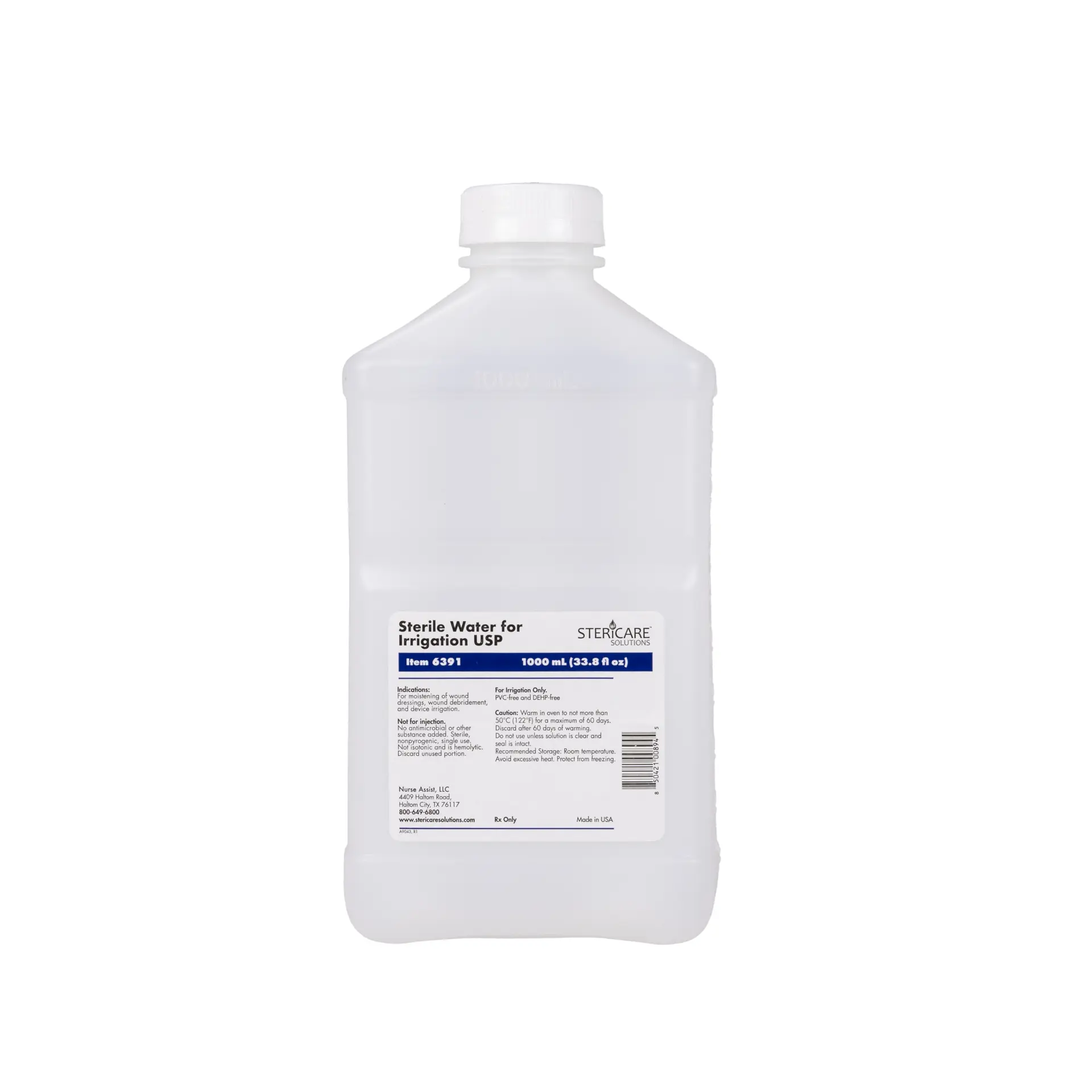 - Sterile Water for Irrigation USP, 1000mL, in Plastic Pour Bottle